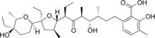 Lasalocid is an antibacterial agent and a coccidiostat, which is produced by strains of Streptomyces lasaliensis. It is the drug in the feed additives called Bovatec and Avatec.[1]