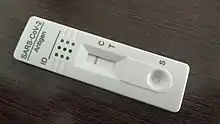 Lateral flow assays have played a critical role in COVID-19 testing as they have the benefit of delivering a result in 15–30 minutes.[28] The systematic evaluation of lateral flow assays during the COVID-19 pandemic[29] was initiated at Oxford University as part of a UK collaboration with Public Health England. A study that started in June 2020 in the United Kingdom, FALCON-C19, confirmed the sensitivity of some lateral flow devices (LFDs) in this setting.[30][31][32] Four out of 64 LFDs tested had desirable performance characteristics according to these early tests; the Innova SARS-CoV-2 Antigen Rapid Qualitative Test performed moderately[32] in viral antigen detection/sensitivity with excellent specificity, although kit failure rates and the impact of training were potential issues.[31] The Innova test's specificity is more widely publicised, but sensitivity in phase 4 trials was 50.1%.[33] This describes a device for which one out of every two patients infected with COVID-19 and tested in real-world conditions would receive a false-negative result. After closure of schools in January 2021, biweekly LFTs were introduced in England for teachers, pupils, and households of pupils when schools re-opened on March 8, 2021 for asymptomatic testing.[34] Biweekly LFT were made universally available to everyone in England on April 9, 2021.[35] LFTs have been used for mass testing for COVID-19 globally[36][37][38] and complement other public health measures for COVID-19.[39]