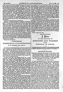 Confessions of a laudanum drinker, The Lancet, 1866