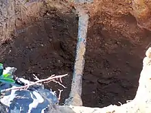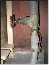 A lead service line (LSL, also known as lead service pipe,[1] and lead connection pipe[2]) is a pipe made of lead which is used in potable water distribution to connect a water main to a user's premises.