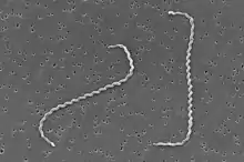 | Scanning electron micrograph of Leptospira interrogans. | |