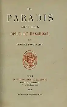 Les Paradis Artificiels (Artificial Paradises) is a book by French poet Charles Baudelaire, first published in 1860, about the state of being under the influence of opium and hashish. Baudelaire describes the effects of the drugs and discusses the way in which they could theoretically aid mankind in reaching an "ideal" world. The text was influenced by Thomas de Quincey's Confessions of an English Opium-Eater and Suspiria de Profundis.[1]