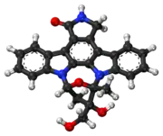 Lestaurtinib (rINN, codenamed CEP-701) is a tyrosine kinase inhibitor structurally related to staurosporine. This semisynthetic derivative of the indolocarbazole K252a was investigated by Cephalon as a treatment for various types of cancer.[1] It is an inhibitor of the kinases fms-like tyrosine kinase 3 (FLT3),[2] Janus kinase 2 (JAK2),[3] tropomyosin receptor kinase (trk) A (TrkA), TrkB and TrkC.[4]