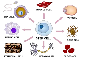 Bone marrow is the soft spongy area in some larger bones of the body that produces many cells which make up red blood cells, white blood cells and platelets.[16] These cells are developed from a type of cell found in bone marrow, termed hematopoietic stem cells.[16] The body is able to direct these stem cells to develop in the blood at any given moment and this is a rapid process.[16] Most of the stem cells remain in the marrow until they are mature which then they are released for specific functions in the body such as carrying oxygen, providing infection protection, and helping blood clotting.[16] Stem cells found in circulating blood are able to be extracted for stem cell therapy use and research.[16]