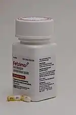 Levomilnacipran (brand name Fetzima) is an antidepressant which was approved in the United States in 2013 for the treatment of major depressive disorder (MDD) in adults.[1] It is the levorotatory enantiomer of milnacipran, and has similar effects and pharmacology, acting as a serotonin–norepinephrine reuptake inhibitor (SNRI).[4][5]