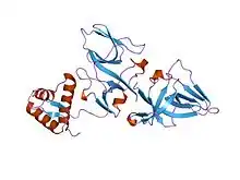 Repressor LexA or LexA is a transcriptional repressor (EC 3.4.21.88) that represses SOS response genes coding primarily for error-prone DNA polymerases, DNA repair enzymes and cell division inhibitors.[1] LexA forms de facto a two-component regulatory system with RecA, which senses DNA damage at stalled replication forks, forming monofilaments and acquiring an active conformation capable of binding to LexA and causing LexA to cleave itself, in a process called autoproteolysis.[2]