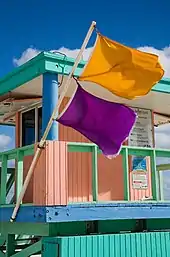 In most countries, lifeguards use similar flag signs to signal swimmers their presence, specific areas and possible dangers:[25]