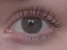 A limbal ring is a dark ring around the iris of the eye, where the sclera meets the cornea.[1] It is a dark-colored manifestation of the corneal limbus resulting from optical properties of the region.[2] The appearance and visibility of the limbal ring can be negatively affected by a variety of medical conditions concerning the peripheral cornea.[3] It has been suggested that limbal ring thickness may correlate with health or youthfulness and may contribute to facial attractiveness.[3][4] Some contact lenses are colored to simulate limbal rings.[1]