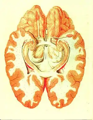 ![]() Cross section of the human brain showing parts of the limbic system from below. Traité d'Anatomie et de Physiologie (1786) | |