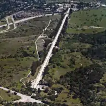 A linear particle accelerator (often shortened to linac) is a type of particle accelerator that accelerates charged subatomic particles or ions to a high speed by subjecting them to a series of oscillating electric potentials along a linear beamline. The principles for such machines were proposed by Gustav Ising in 1924,[1] while the first machine that worked was constructed by Rolf Widerøe in 1928[2] at the RWTH Aachen University.[3][4] Linacs have many applications: they generate X-rays and high energy electrons for medicinal purposes in radiation therapy, serve as particle injectors for higher-energy accelerators, and are used directly to achieve the highest kinetic energy for light particles (electrons and positrons) for particle physics.
