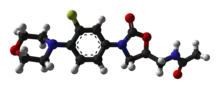 ![Skeletal formula of N-{[(5S)-3-[3-fluoro-4-(morpholin-4-yl)phenyl]-2-oxo-1,3-oxazolidin-5-yl]methyl}acetamide, highlighting the morpholino and fluoro groups in orange, with the rest in blue. The carbon atoms of the parent chain are numbered.](../I/Linezolid_showing_oxazolidinone_pharmacophore.svg.png.webp)