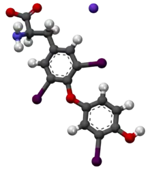 Liothyronine is a manufactured form of the thyroid hormone triiodothyronine (T3).[1] It is most commonly used to treat hypothyroidism and myxedema coma.[1] It can be taken by mouth or by injection into a vein.[1]