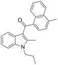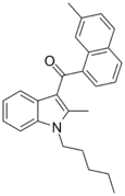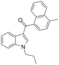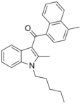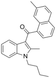 5. Huffman JW, Zengin G, Wu MJ, Lu J, Hynd G, Bushell K, Thompson AL, Bushell S, Tartal C, Hurst DP, Reggio PH, Selley DE, Cassidy MP, Wiley JL, Martin BR (January 2005). "Structure-activity relationships for 1-alkyl-3-(1-naphthoyl)indoles at the cannabinoid CB(1) and CB(2) receptors: steric and electronic effects of naphthoyl substituents. New highly selective CB(2) receptor agonists". Bioorganic & Medicinal Chemistry. 13 (1): 89–112. doi:10.1016/j.bmc.2004.09.050. PMID 15582455.