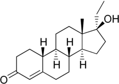 17α-Ethynylated testosterone derivatives are potent progestins with only very weak androgenic/anabolic activity and are used as oral contraceptives or for the treatment of gynecological conditions in women. They are invariably classified as progestins rather than as AAS. However, these progestins are testosterone derivatives and do have significant androgenic/anabolic activity, sometimes producing acne and other mild androgenic effects in women. Conversely, in men, these drugs may actually have functional antiandrogen effects due to their potent progestogenic and hence antigonadotropic activity and capacity to suppress gonadal testosterone production.[3]