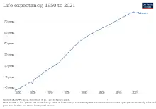 An even greater priority for the sector is non-communicable diseases. According to a recent study conducted by the Ministry of Health (Ministère de la Santé, MS) and the WHO, non-communicable diseases account for 75% of deaths, such as cardiovascular diseases (34%), diabetes (12%) and cancer (11%).[5] Improved longevity – with life expectancy increasing from an average 49.3 years in 1962 to 70.6 in 2012 – and changes in lifestyle and eating habits have meant that such diseases have been on the rise in the past few decades, claiming today three out of every four deaths in Morocco.[5]