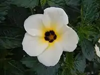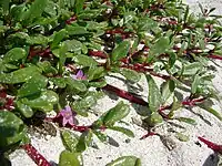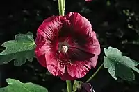 | Alcea rosea | Common hollyhock | Believed to be an emollient and laxative. It is used to control inflammation, to stop bedwetting and as a mouthwash in cases of bleeding gums.[10] | ![]() |
