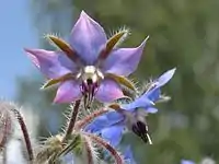 | Borago officinalis | Borage | Used in hyperactive gastrointestinal, respiratory and cardiovascular disorders,[30] such as gastrointestinal (colic, cramps, diarrhea), airways (asthma, bronchitis), cardiovascular, (cardiotonic, antihypertensive and blood purifier), urinary (diuretic and kidney/bladder disorders).[31] | ![]() |