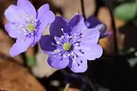 | Anemone hepatica | Common hepatica | Historically used to treat liver diseases, it is still used in alternative medicine today. Other modern applications by herbalists include treatments for pimples, bronchitis and gout.[17] | ![]() |
