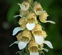 | Digitalis lanata | Digitalis or foxglove | It came into use in treating cardiac disease in late 18th century England in spite of its high toxicity.a Its use has been almost entirely replaced by the pharmaceutical derivative Digoxin, which has a shorter half-life in the body, and whose toxicity is therefore more easily managed.[54] Digoxin is used as an antiarrhythmic agent and inotrope.[55] | ![]() |