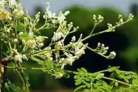 | Azadirachta indica | Neem | Used in India to treat worms, malaria, rheumatism and skin infections among many other things. Its many uses have led to neem being called "the village dispensary" in India.[28] | ![]() |