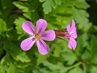 | Geranium robertianum | Robert geranium | In traditional herbalism, it was used as a remedy for toothache and nosebleeds[79] and as a vulnerary (used for or useful in healing wounds).[80] | ![]() |
