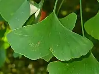 | Ginkgo biloba | Ginkgo | The leaf extract has been used to treat asthma, bronchitis, fatigue, Alzheimer's and tinnitus.[81] | ![]() |