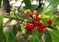 | Crataegus monogyna and Crataegus laevigata | Hawthorn | Fruit has been used for centuries purportedly for heart disease, digestive and kidney related problems.[51] | ![]() |
