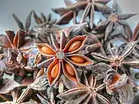 | Illicium verum | Star anise | It is the major source of the chemical compound shikimic acid, a primary precursor in the pharmaceutical synthesis of anti-influenza drug oseltamivir (Tamiflu).[93] | ![]() |