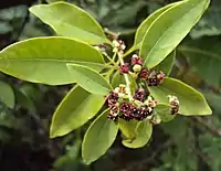 | Erythroxylum coca | Coca | Used as coca tea or chewed, traditionally as a stimulant to overcome fatigue, hunger, thirst, and altitude sickness.[64] Also used as an anesthetic and analgesic.[65] | ![]() |