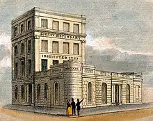 The Surrey Dispensary, in Southwark (now an area of central London). Coloured lithograph by R. Alford, c.1840.[1]
