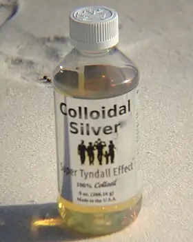 - Claims that colloidal silver solution can kill over 650 pathogens including coronavirus prompted antifraud actions. The National Center for Complementary and Integrative Health warned on their website against taking colloidal silver as dietary supplement. Seven warning letters were filed to companies for selling fraudulent products.[68] Preacher Jim Bakker had been claiming that the colloid silver he sold (and only his) could be used to treat COVID-19.[69] Colloidal silver is not an effective treatment for anything, and may interfere with other medications or cause permanent argyria (blue-gray skin discoloration).[70]