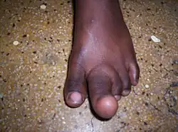 Local gigantism or localised gigantism is a condition in which a certain part of the body acquires larger than normal size due to excessive growth of the anatomical structures or abnormal accumulation of substances. It is more common in fingers and toes, where it is termed macrodactyly. However, sometimes an entire limb may be enlarged.