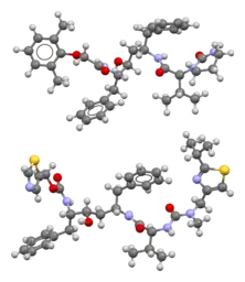 Lopinavir was developed by Abbott in an attempt to improve upon the company's earlier protease inhibitor, ritonavir, specifically with regard to its serum protein-binding properties (reducing the interference by serum on protease enzyme inhibition) and its HIV resistance profile (reducing the ability of virus to evolve resistance to the drug).[11] Administered alone, lopinavir has insufficient bioavailability; however, like several HIV protease inhibitors, its blood levels are greatly increased by low doses of ritonavir, a potent inhibitor of intestinal and hepatic cytochrome P450 3A4, which would otherwise reduce drug levels through catabolism.[11] Abbott, therefore, pursued a strategy of co-administering lopinavir with doses of ritonavir sub-therapeutic with respect to HIV inhibition; hence, lopinavir was only formulated and marketed as a fixed-dose combination medication with ritonavir.