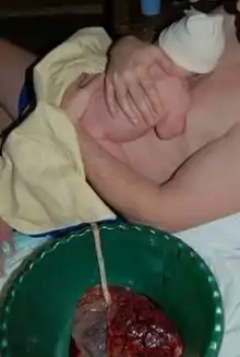 Lotus birth (or umbilical cord nonseverance - UCNS) is the practice of leaving the umbilical cord uncut after childbirth so that the baby is left attached to the placenta until the cord naturally separates at the umbilicus.[1] This usually occurs within 3–10 days after birth.[2] The practice is performed mainly for spiritual purposes, including for the perceived spiritual connection between the placenta and the newborn.[3]