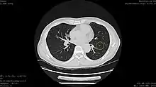 In the following years, the scientific community shifted its attention to computer tomography (CT). In 1996, results were published of a study of 1369 subjects screened in Japan that revealed that 73% of lung cancers that were missed by chest x-ray were able to be detected by CT scan.[19] Among the earliest United States-based clinical trials was the Early Lung Cancer Action Project (ELCAP), which published its results in 1999.[20] ELCAP screened 1000 volunteers with low-dose CT and chest x-ray. They were able to detect non-calcified nodules in 23% of patients by CT compared with 7% by chest x-ray. While this trial and a similar trial conducted by Mayo Clinic in 2005 demonstrated that CT was able to detect lung cancer at a higher rate than chest x-ray, both these trials used survival improvement, rather than mortality reduction, as an outcome, and thus were unable to prove that the use of CTs in lung cancer screening was actually impacting the number of people dying from lung cancer.[21][18]