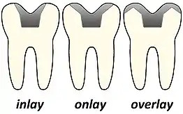 - Self-adhesive cements do not require intermediate steps to bond tooth structure, unlike resin cements.[26] This gives simplicity and efficiency in its use. They are dual-cured and are most effective when bonded to dentine.[26] It is suitable for cementing all-ceramic crowns, porcelain inlays and onlays.[26]