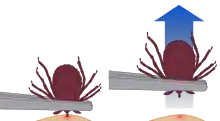 Removal of a tick using tweezers