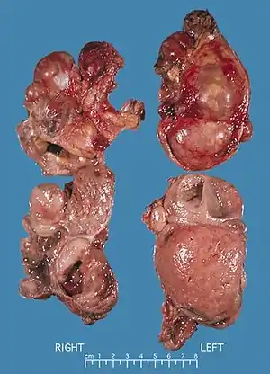 | Bilateral pheochromocytomas associated with Multiple endocrine neoplasia type 2 | |