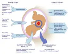 - Beta J, Khan N, Khalil A, Fiolna M, Ramadan G, Akolekar R (September 2019). "Maternal and neonatal complications of fetal macrosomia: systematic review and meta-analysis". Ultrasound in Obstetrics & Gynecology. 54 (3): 308–318. doi:10.1002/uog.20279. PMID 30938004.