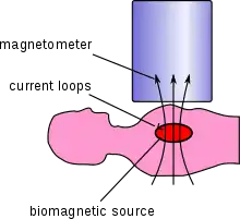In comparison to the electric signals, which are influenced by the differently conductive tissue of the body and varying resistance of the skin before they can be recorded, the magnetic signals travel through the body almost without disturbance. The differences in the electric potentials, that are recorded by the ECG, are directly depending on the inhomogeneity and geometry of the thorax, the magnetic signals outside of the thorax depend primarily on the intracellular currents of the cardiac tissue and only secondarily on the secondary currents generating the electric signal. Furthermore, the magnetic signals of so-called vortex currents, which occur regularly in every heartbeat and include important information for an advanced and more accurate cardiac diagnosis (first theoretically described by John Wikswo),[1][2] can be acquired with an MFI system, but cannot be recorded electrically on the body surface (First experimental hint by Brockmeier et al. 1994[3] and comprehensive demonstration Brockmeier et al. 1997).[4]