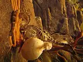 The fish family Syngnathidae has the unique characteristic of a highly derived form of male brood care referred to as "male pregnancy".[2] The family is highly diverse, containing around 300 different species of fish. Included in Syngnathidae are seahorses, the pipefish, and the weedy and leafy seadragons. The males of some of these species possess a brood pouch on the trunk or tail; in other species, the eggs are merely attached to the male's trunk or tail when the female lays them. Although biologists' definitions of pregnancy somewhat differ, all members of the family are considered by ichthyologists to display male pregnancy, even those without an external brood pouch.