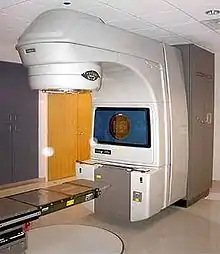 External beam radiation therapy (EBRT) uses a linear accelerator to produce high-energy x-rays that are directed in a beam towards the prostate. A technique called Intensity Modulated Radiation Therapy (IMRT) may be used to adjust the radiation beam to conform with the shape of the tumor, allowing higher doses to be given to the prostate and seminal vesicles with less damage to the bladder and rectum. External beam radiation therapy is generally given over several weeks, with daily visits to a radiation therapy center. New types of radiation therapy such as IMRT have fewer side effects than traditional treatment. However, in the short term, EBRT has been associated with acute worsening of urinary obstructive and bowel symptoms. These symptoms have been shown to decline over time.[7] Thirty-Six centers in the United States are now using proton therapy for prostate cancer, which uses protons rather than X-rays to kill the cancer cells.[23] Researchers are also studying types of stereotactic body radiotherapy (SBRT) to treat prostate cancer