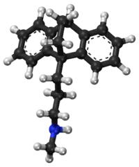 Maprotiline, sold under the brand name Ludiomil among others, is a tetracyclic antidepressant (TeCA) that is used in the treatment of depression.[4] It may alternatively be classified as a tricyclic antidepressant (TCA), specifically a secondary amine.[4] In terms of its chemistry and pharmacology, maprotiline is closely related to other secondary amine TCAs like nortriptyline and protriptyline, and has similar effects to them.[5][4]