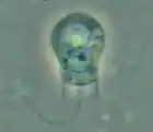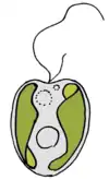 A single-celled ciliate with green zoochlorellae living inside endosymbiotically