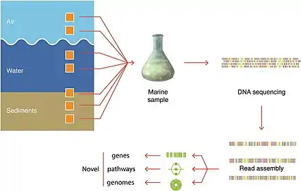 Modified text was copied from this source, which is available under a Creative Commons Attribution 4.0 International License. - Kodzius, R.; Gojobori, T. (2015). "Marine metagenomics as a source for bioprospecting". Marine Genomics. 24: 21–30. Bibcode:2015MarGn..24...21K. doi:10.1016/j.margen.2015.07.001. PMID 26204808.