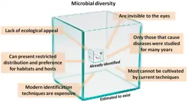 - Vitorino, L.C.; Bessa, L.A. (2018). "Microbial diversity: the gap between the estimated and the known". Diversity. 10 (2): 46. doi:10.3390/d10020046.