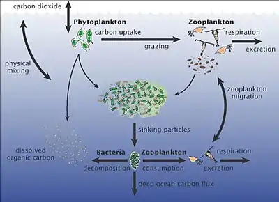 Modified text was copied from this source, which is available under a Creative Commons Attribution 3.0 International License. - Simon, M., Grossart, H., Schweitzer, B. and Ploug, H. (2002) "Microbial ecology of organic aggregates in aquatic ecosystems". Aquatic microbial ecology, 28: 175–211. doi:10.3354/ame028175.