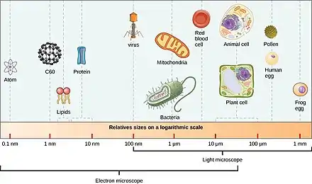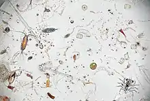 Microorganisms make up about 70% of the marine biomass.[4] A microorganism, or microbe, is a microscopic organism too small to be recognised adequately with the naked eye. In practice, that includes organisms smaller than about 0.1 mm.[12]: 13