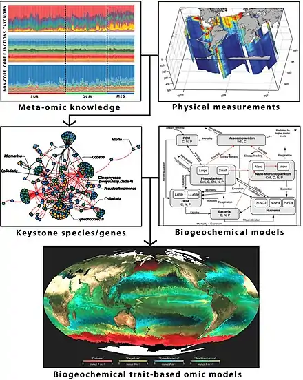 Modified text was copied from this source, which is available under a Creative Commons Attribution 4.0 International License. - Karsenti, E.; Acinas, S.G.; Bork, P.; Bowler, C.; De Vargas, C.; Raes, J.; Sullivan, M.; Arendt, D.; Benzoni, F.; Claverie, J.M.; Follows, M. (2011). "A holistic approach to marine eco-systems biology". PLOS Biology. 9 (10): e1001177. doi:10.1371/journal.pbio.1001177. PMC 3196472. PMID 22028628.