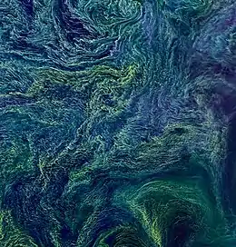 Microscopic life undersea is diverse and still poorly understood, such as for the role of viruses in marine ecosystems.[13] Most marine viruses are bacteriophages, which are harmless to plants and animals, but are essential to the regulation of saltwater and freshwater ecosystems.[14] They infect and destroy bacteria in aquatic microbial communities, and are the most important mechanism of recycling carbon in the marine environment. The organic molecules released from the dead bacterial cells stimulate fresh bacterial and algal growth.[15] Viral activity may also contribute to the biological pump, the process whereby carbon is sequestered in the deep ocean.[16]